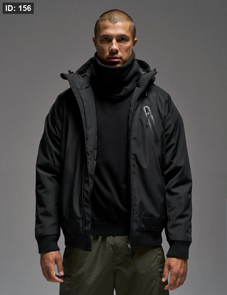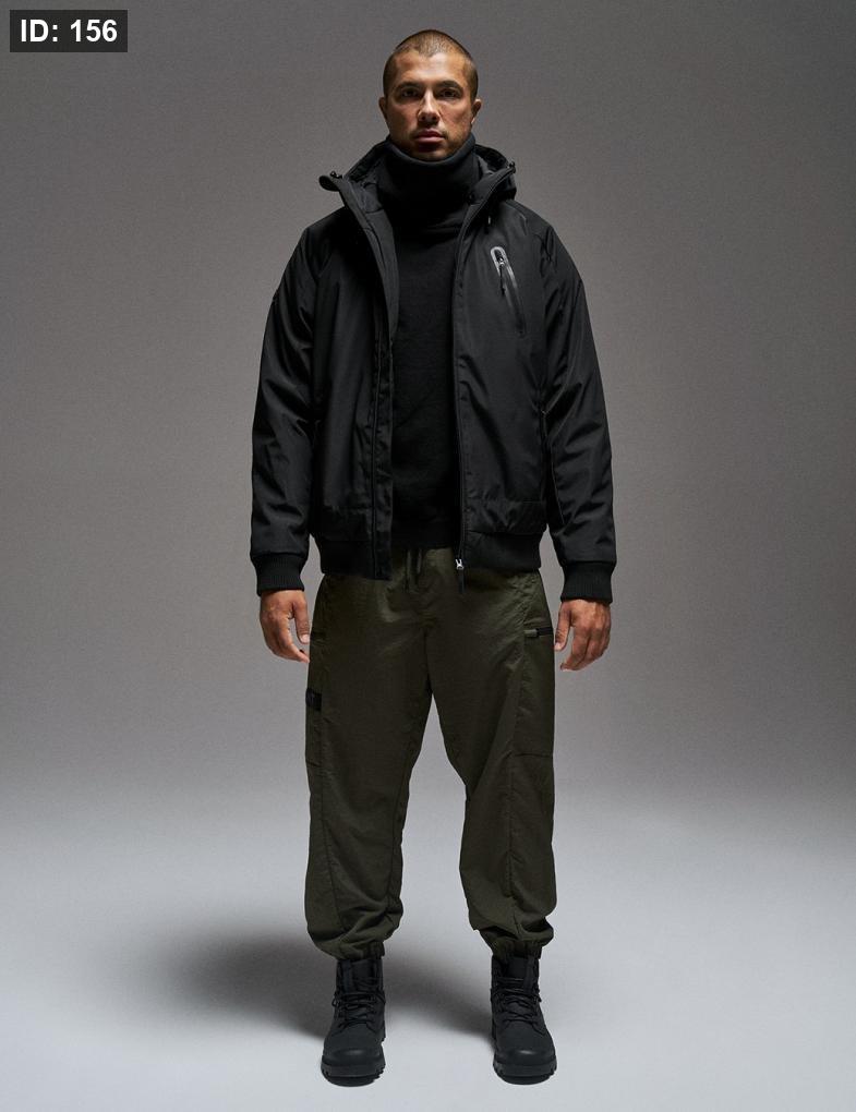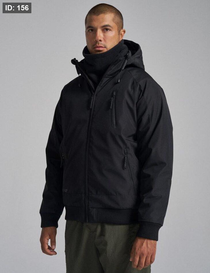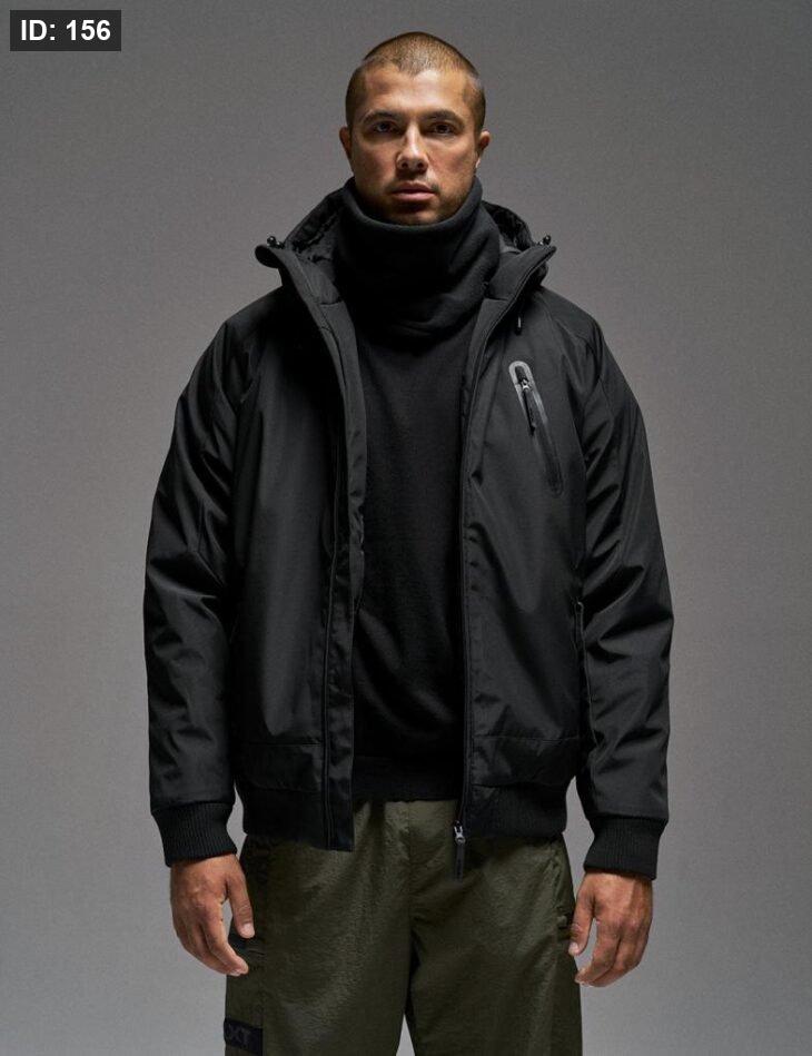 A hooded jacket with a stand-up collar. This model features four external pockets—a front pocket and a chest pocket with a modern elastic band. The jacket is finished with cuffs at the hem and cuffs, which effectively protect against the cold.